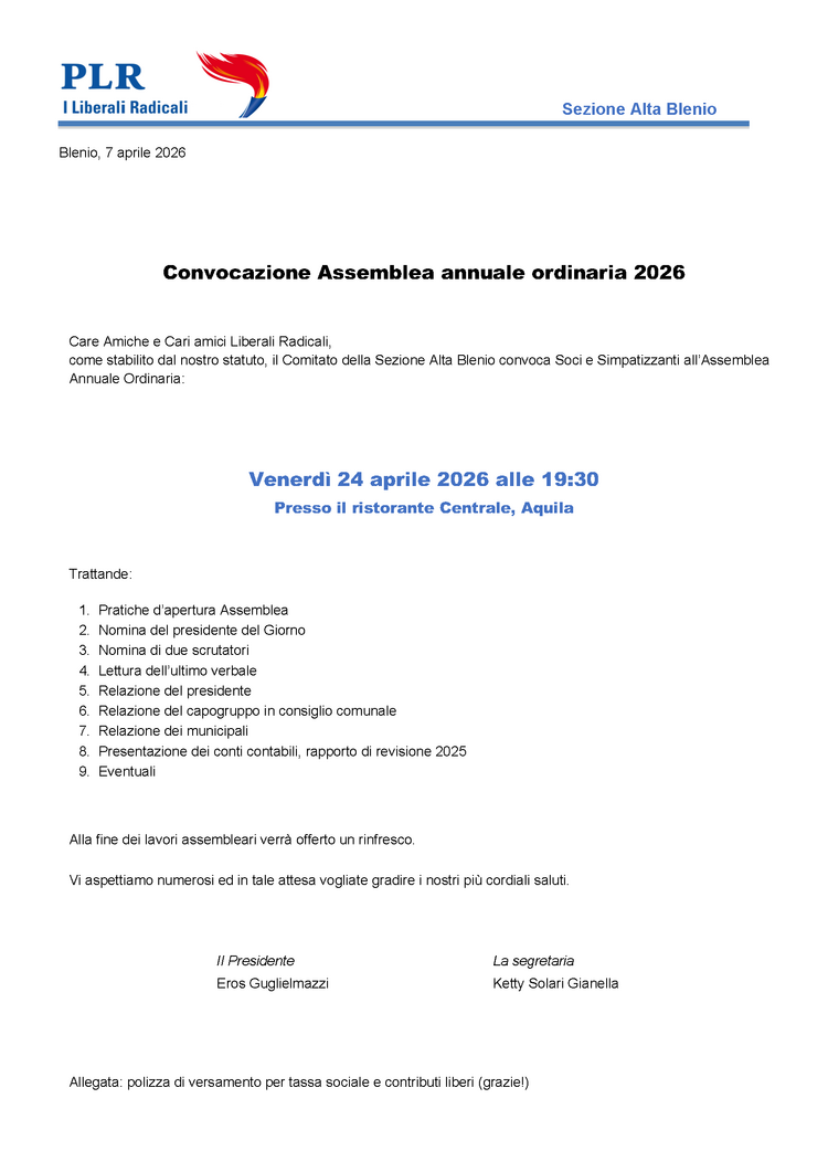 PLR Alta Blenio - Assemblea ordinaria